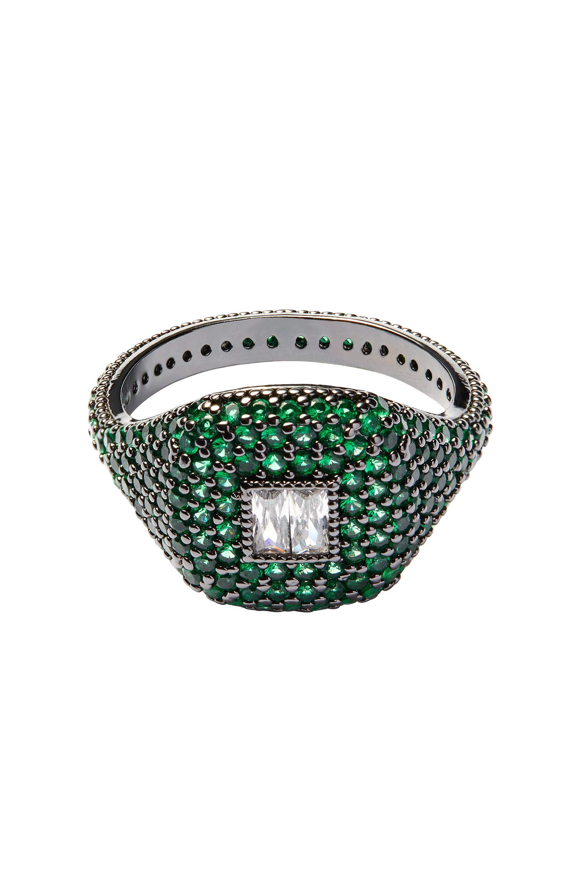 Baguette Cut Ring - Emerald - Black Hardware