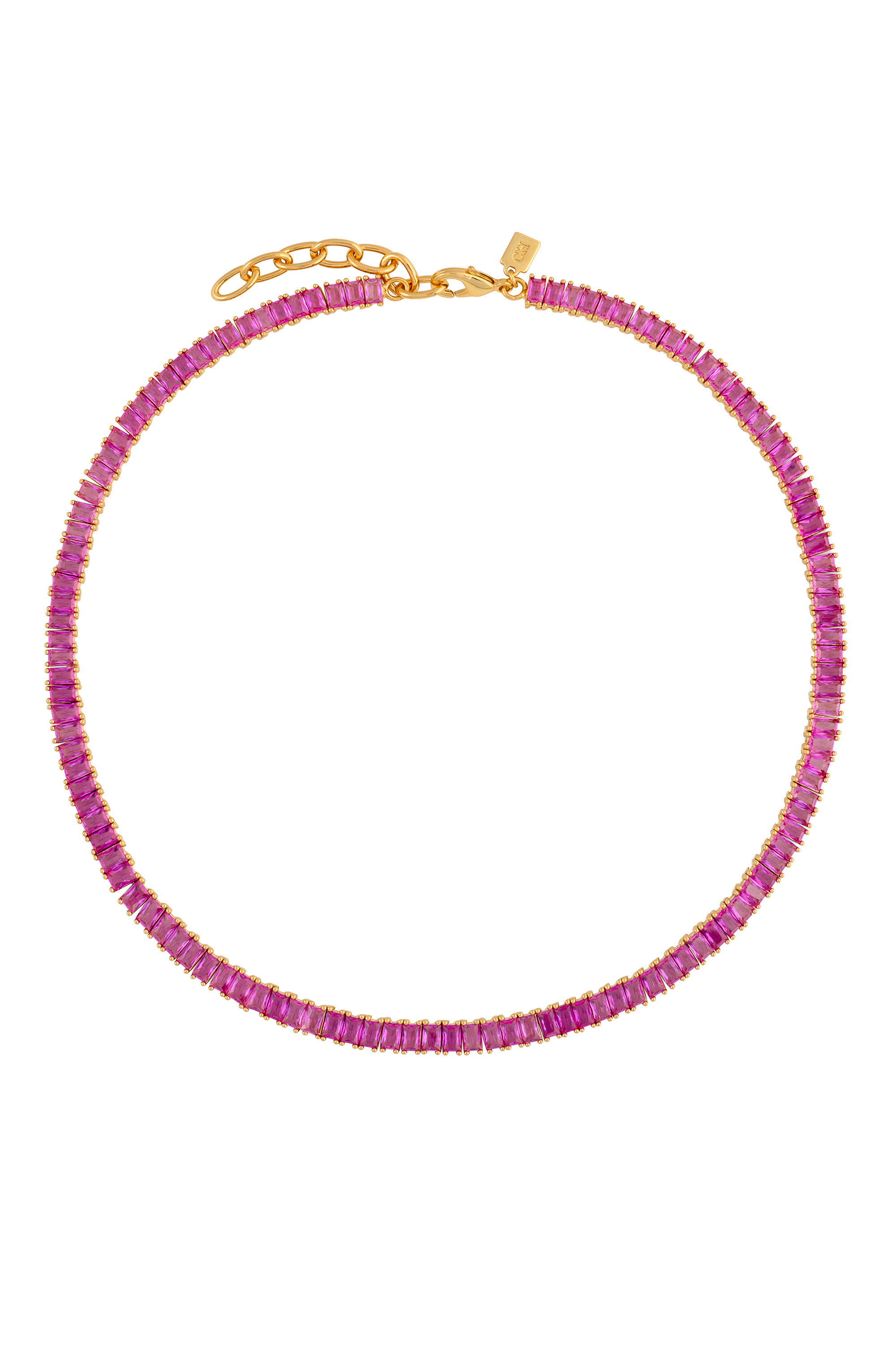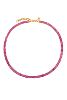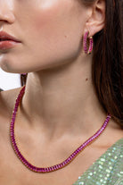 The Baguette Necklace in Sakura brings a burst of joyful color to your neckline, turning every moment into a style statement. A full row of vivid pink baguette-cut stones catches the light with a bright, feminine shimmer while the warm gold setting adds a rich, polished finish. It is bold, playful, and beautifully refined all at once.