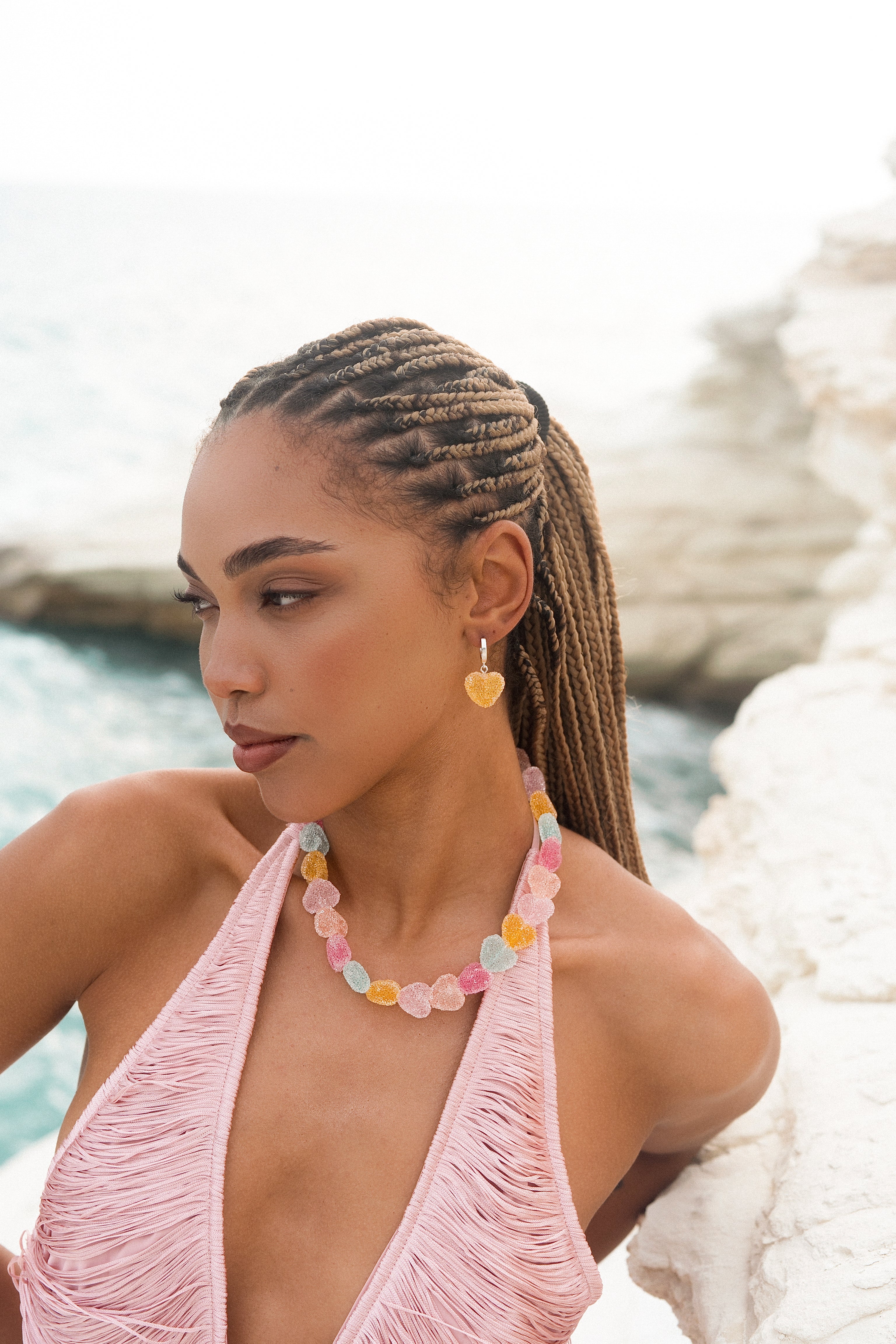 Rock this hero piece with our Jelly Heart Hoops to solidify the look.