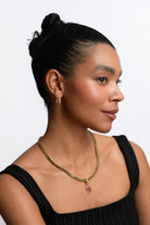 Two hoops in both smooth gold and sparkling pavé are connected together for a pair of earrings that have the look of a curated ear, but without the fuss.