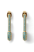 Available in both Small and Medium, and offered in Clear, Emerald, Mykonos Blue, and Rainbow, these earrings are perfect for stacking, styling, or standing alone. Crafted from 18k gold-plated brass and finished with radiant cubic zirconia, Pin Up Earrings are made to turn everyday looks into something unforgettable.