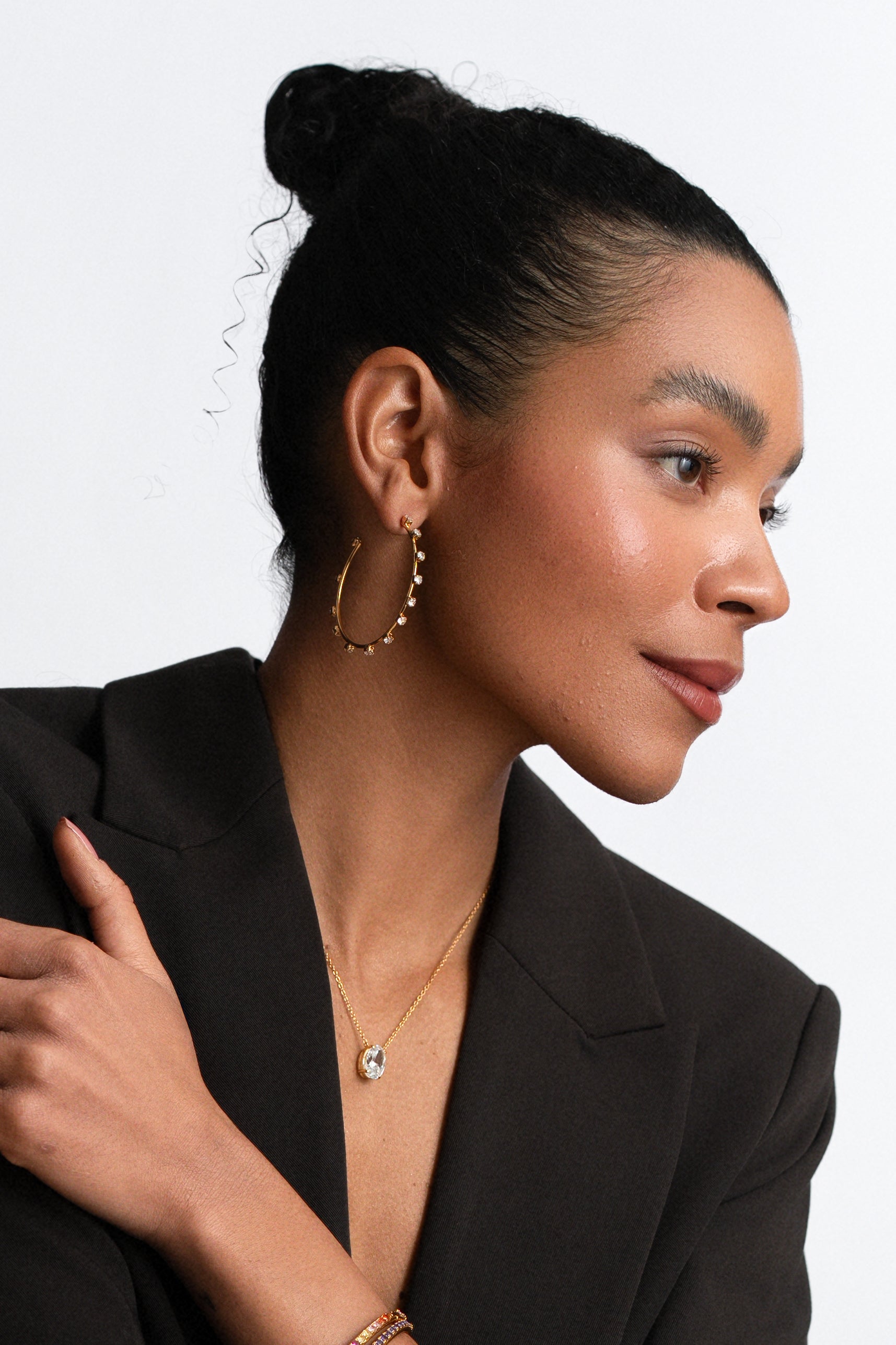 Pair the Infinity Necklace with our Baguette Hoops for a coordinated icy look that has been finished with smooth gold.