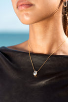 A sparkling oval-cut cubic zirconia sits on a contrastingly delicate gold chain. This is the perfect gift for someone special in your life. A small gesture which reflects infinite sentiment ∞
