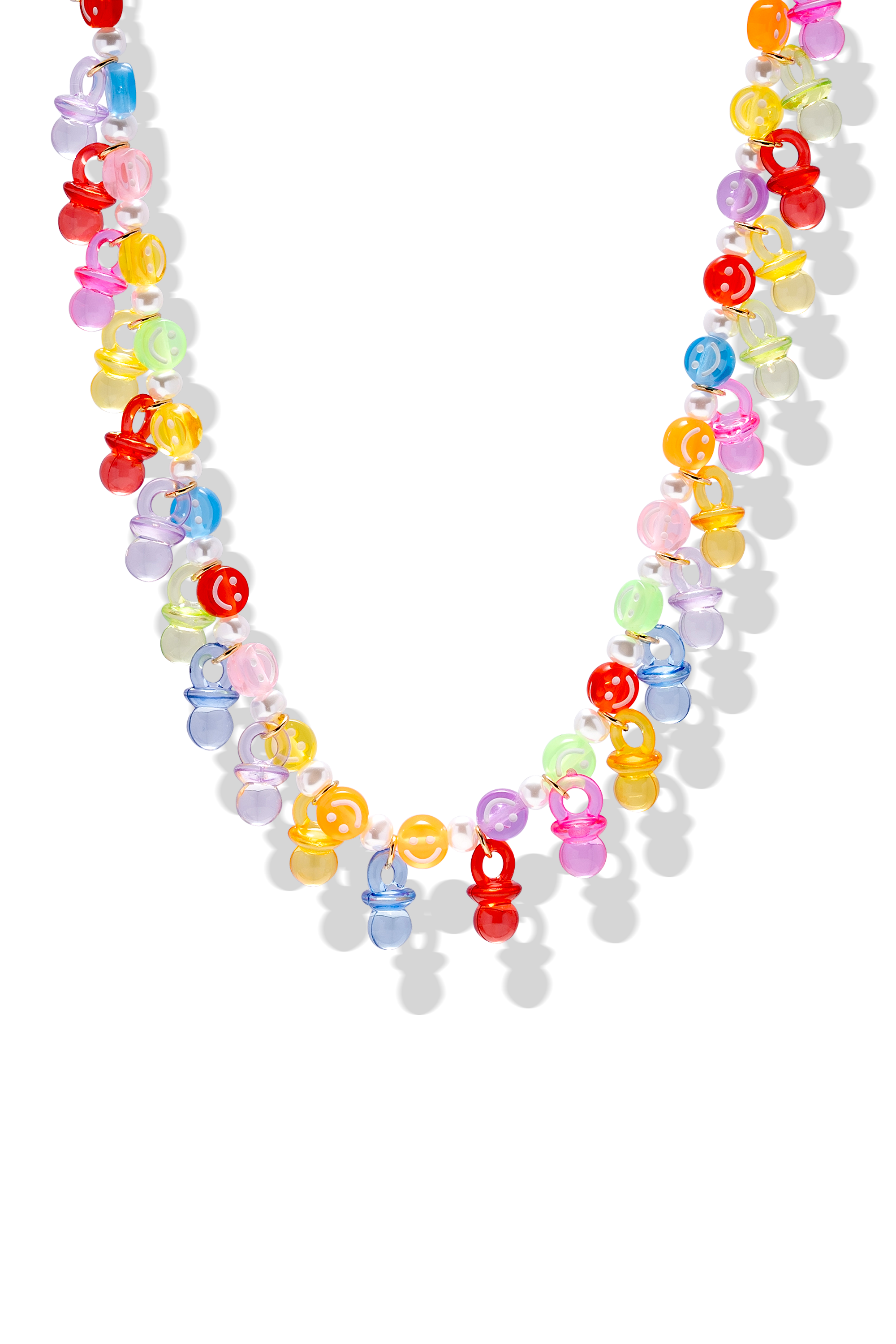 Take a trip down memory lane with our unique Pacifier Nostalgia Necklace! This vibrant, multicoloured necklace is a true 90s throwback. Adorned with an array of miniature pacifier charms and smiley faces in playful, translucent hues, this piece is a nod to iconic 90s jewelry trends.