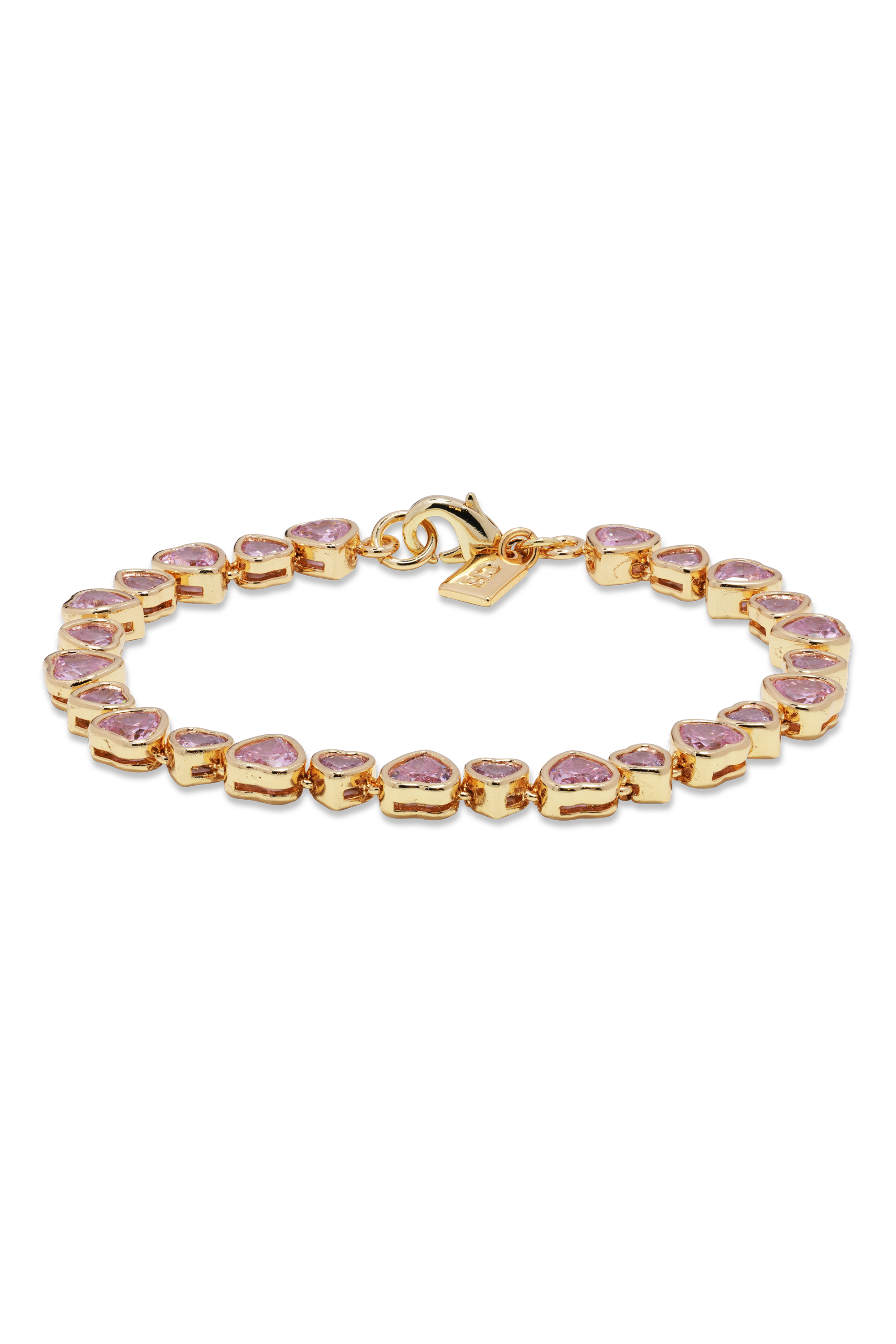 A modern love story in jewelry form, the Sweetheart Bracelet is a radiant expression of romance and elegance. Featuring a continuous line of delicate pink heart-shaped stones set in polished gold-tone settings, this bracelet sparkles with soft color and timeless charm.