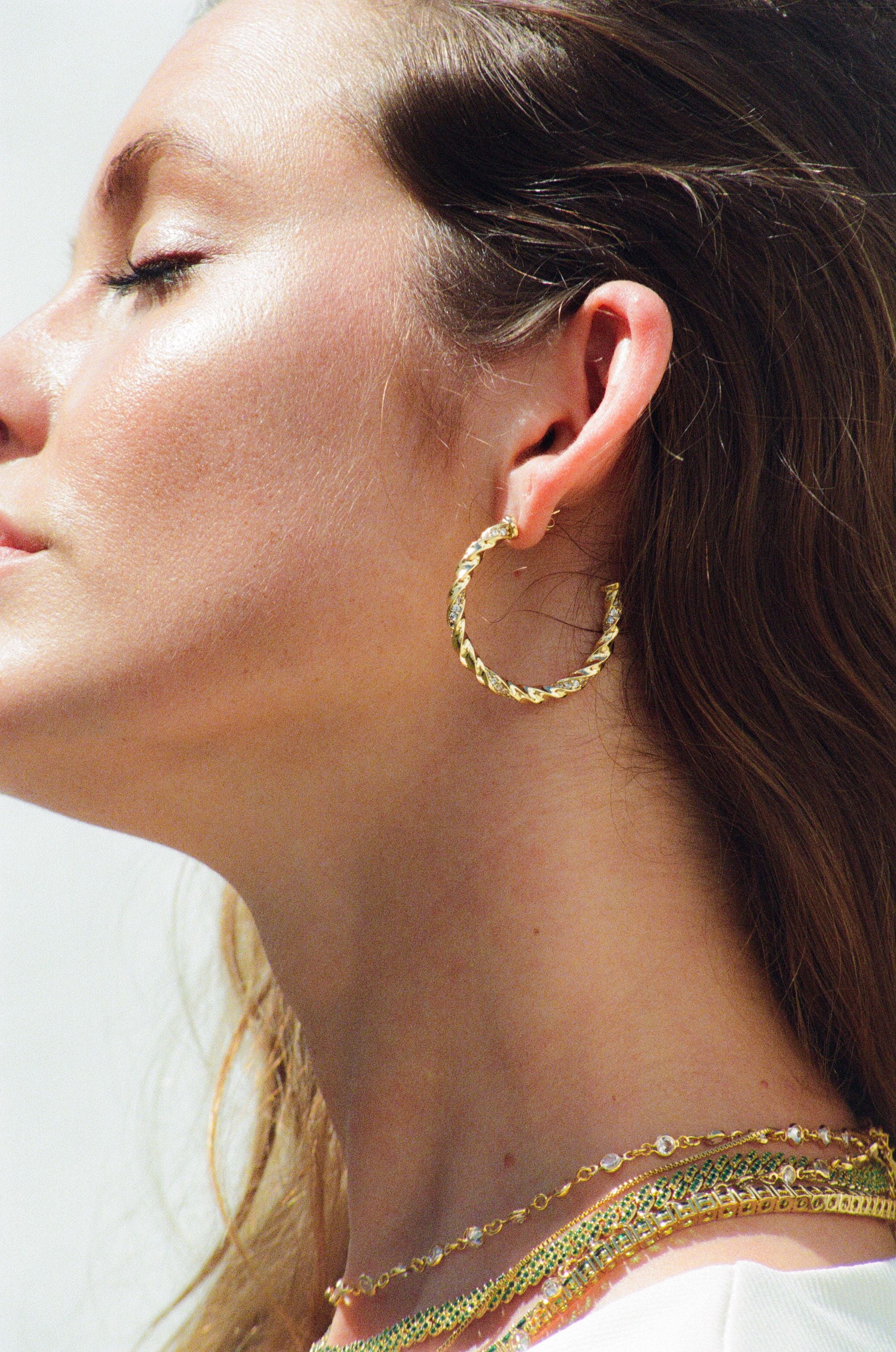 18k 골드 도금 브라스와 큐빅 지르코니아로 제작되었습니다.