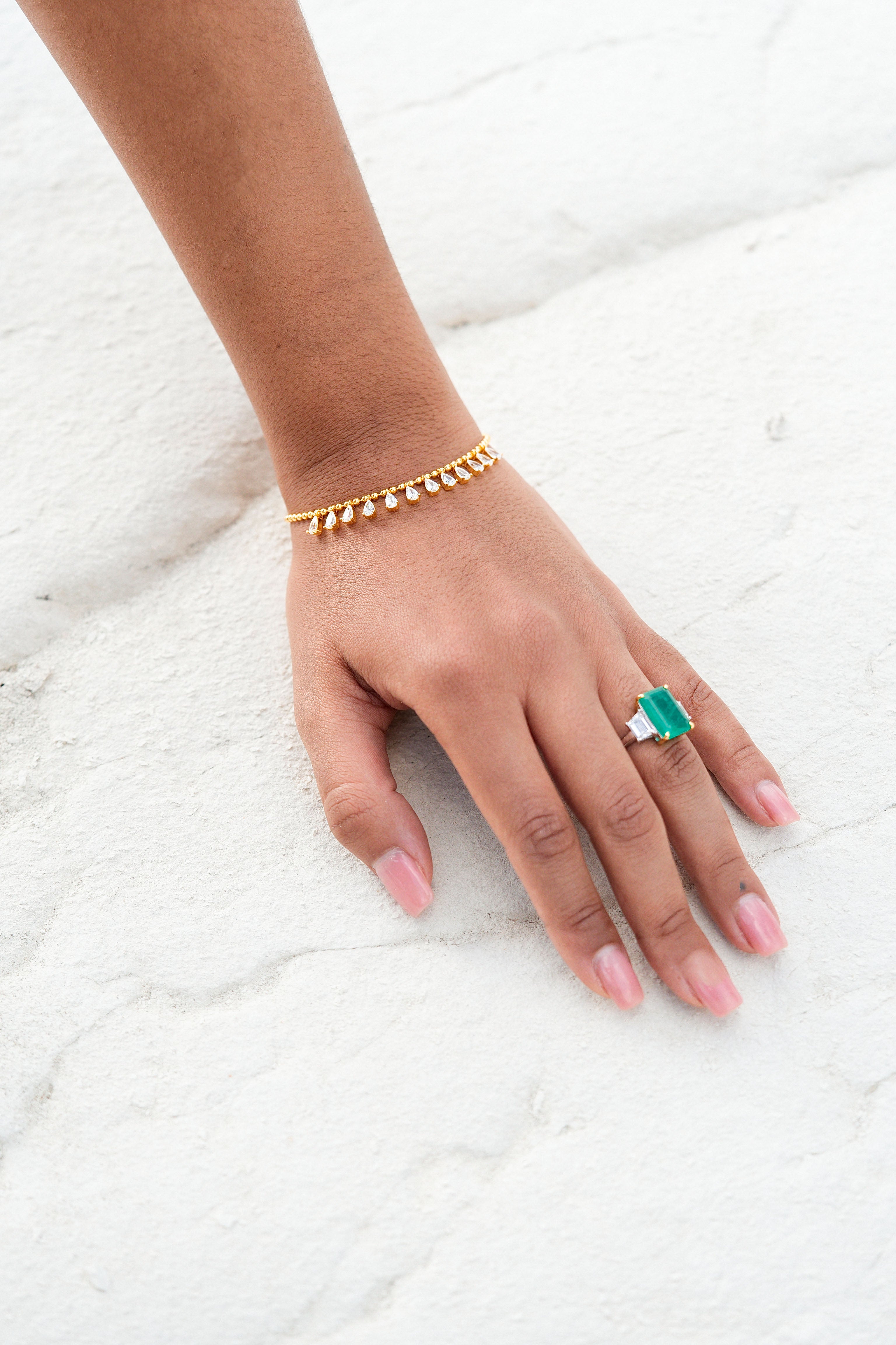 A timeless masterpiece, the Emerald Trapezoid Trilogy Ring combines modern elegance with classic allure. Crafted from rhodium-plated 925 sterling silver, this ring offers a radiant, tarnish-resistant shine that lasts. At its center, a stunning synthetic emerald takes the spotlight, exuding a deep green brilliance reminiscent of natural treasures.