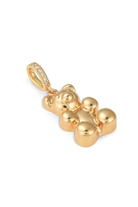 Crafted in a smooth, high-shine gold finish, the rounded silhouette reflects light beautifully, giving the piece a soft, almost liquid glow. The pendant is suspended from a sleek pavé-set connector, delicately lined with sparkling stones that add just the right amount of brilliance. A little nostalgia, a lot of shine. 🐻✨
