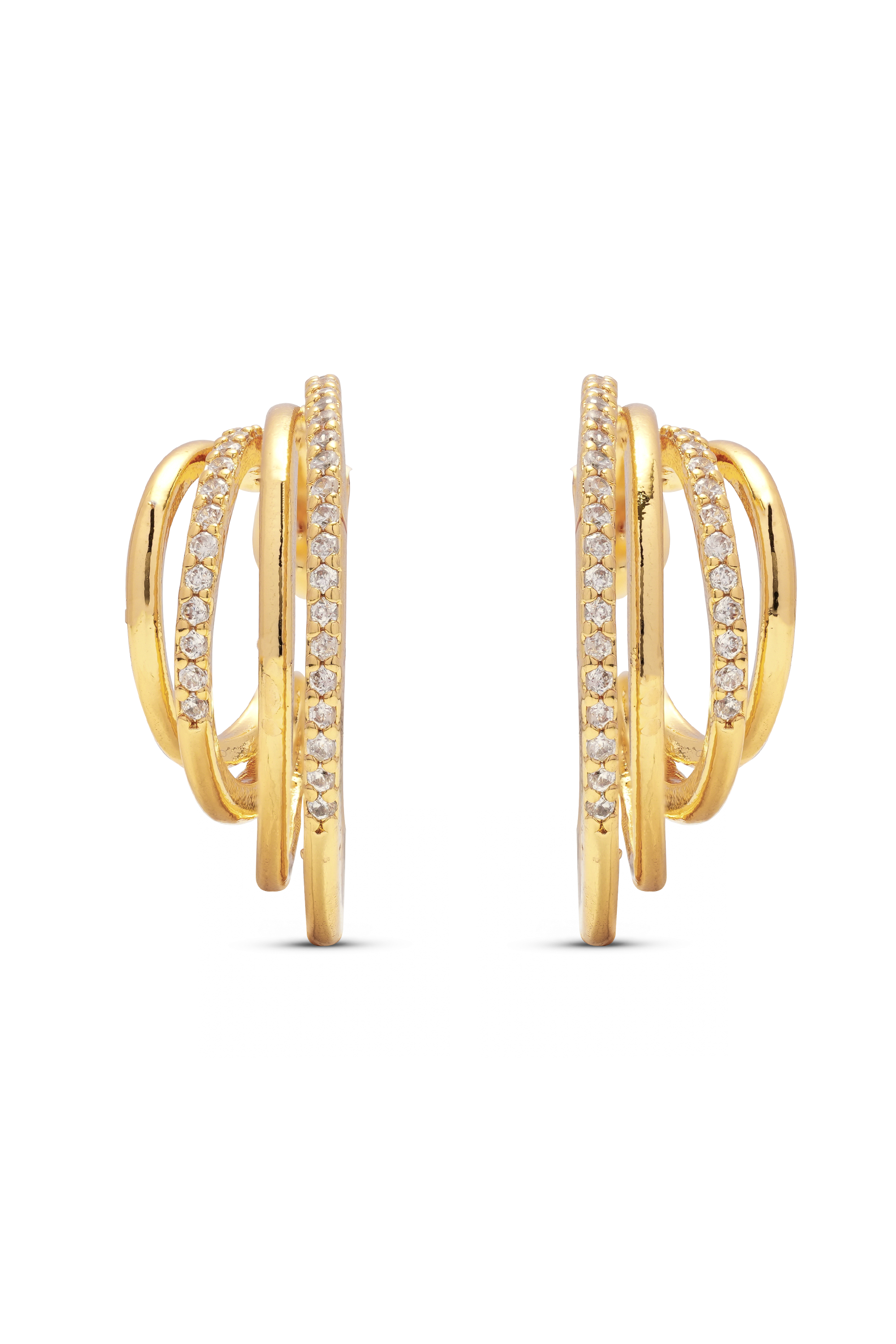 Four hoops in differing dimensions are joined together, giving the effect of a curated ear, but with no fuss. The variation of both sleek gold and pavé cubic zirconia also adds sparkle to the layered effect.