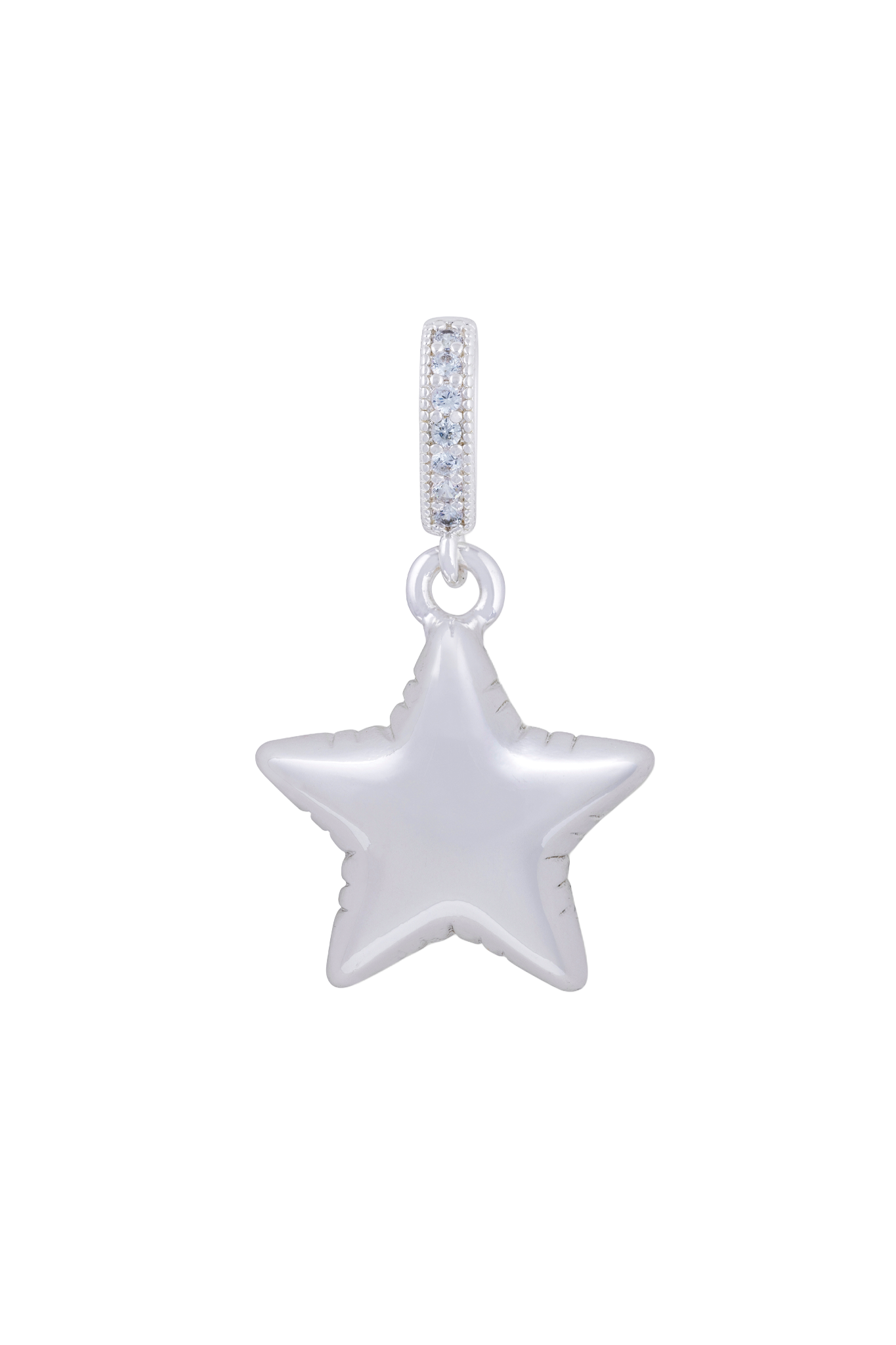 The Balloon Star Pendant in Silver is your everyday good-luck charm with a high-shine glow. Sculpted into a puffy, mirror-polished star, it brings that playful “make a wish” energy, while the pavé-set connector adds a crisp flash of sparkle for extra drama in the best way.