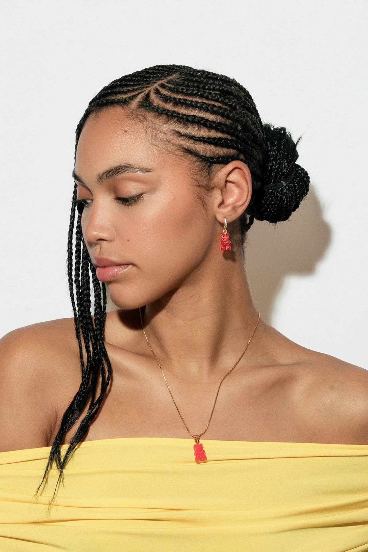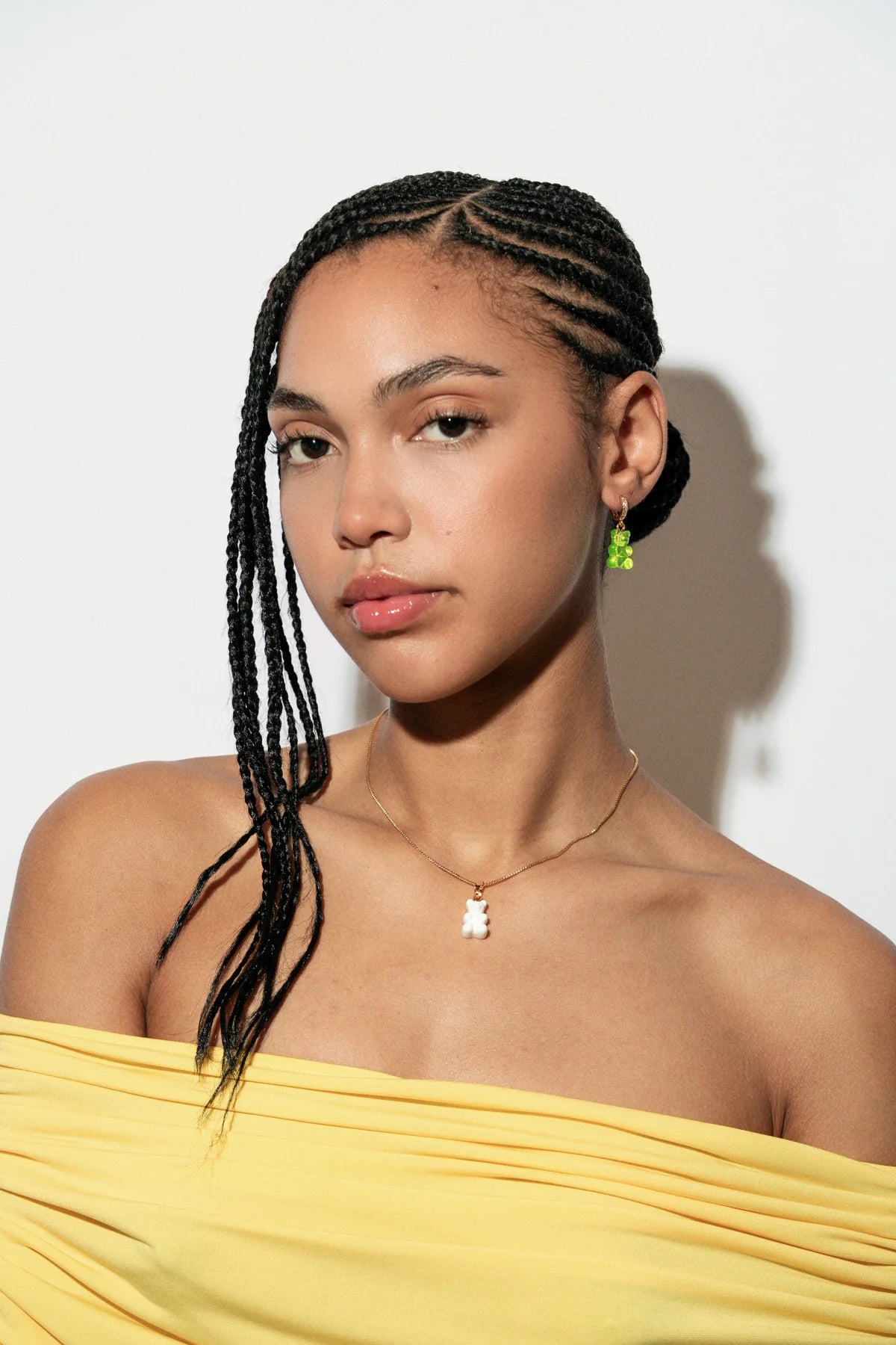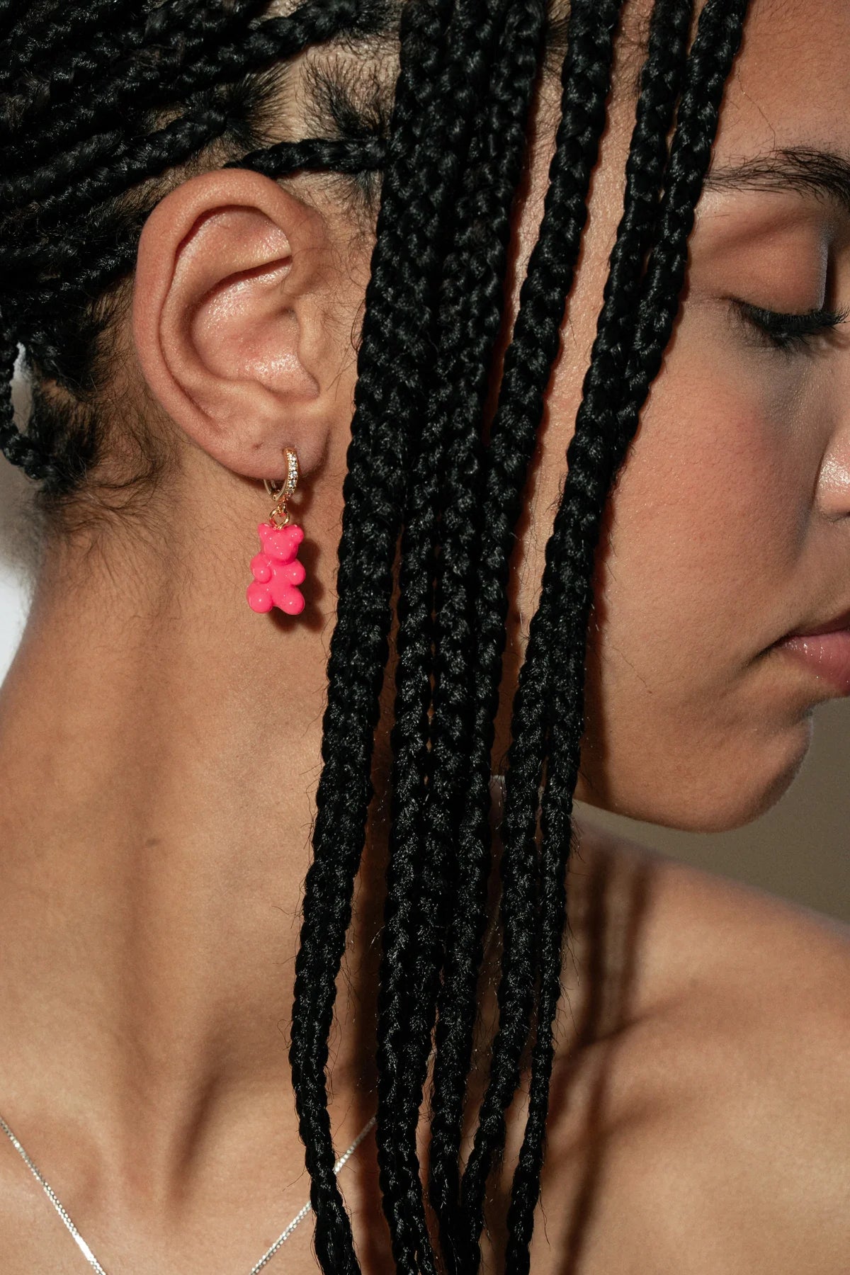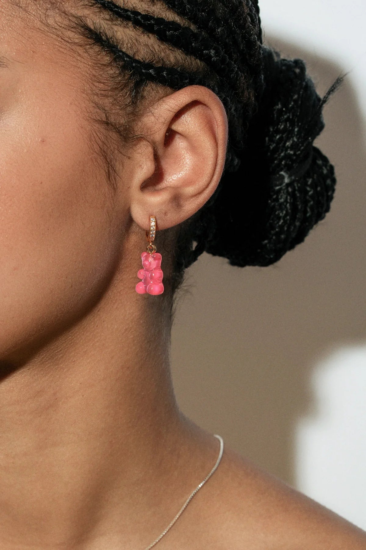 The translucent, jelly-like finish gives the pendant a playful glow, while the 18k gold-plated brass connector adds a touch of refinement, balancing whimsy with sophistication. Designed to spark smiles and conversations, it’s the kind of piece that feels personal, sentimental, and effortlessly cool.