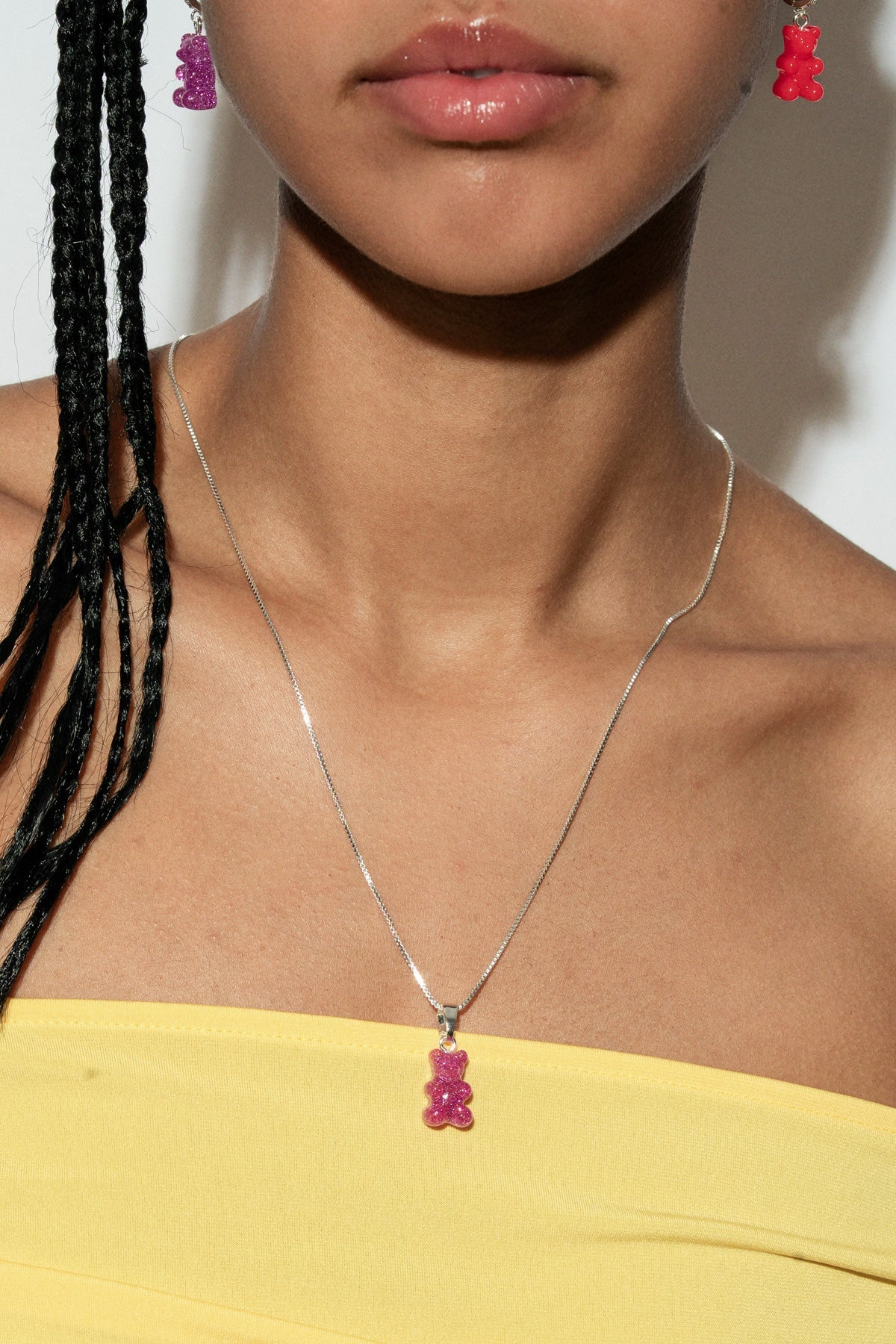 A playful nod to childhood memories, the Nostalgia Bear Pendant blends whimsy with refined craftsmanship. Inspired by classic gummy bears, this charm adds a pop of