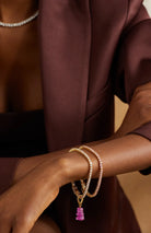Each pendant is available in a range of vibrant colors and finished in either 18k gold-plated brass or silver-plated brass. Choose between a classic connector for a clean, minimal look or a pavé connector for an extra touch of sparkle.