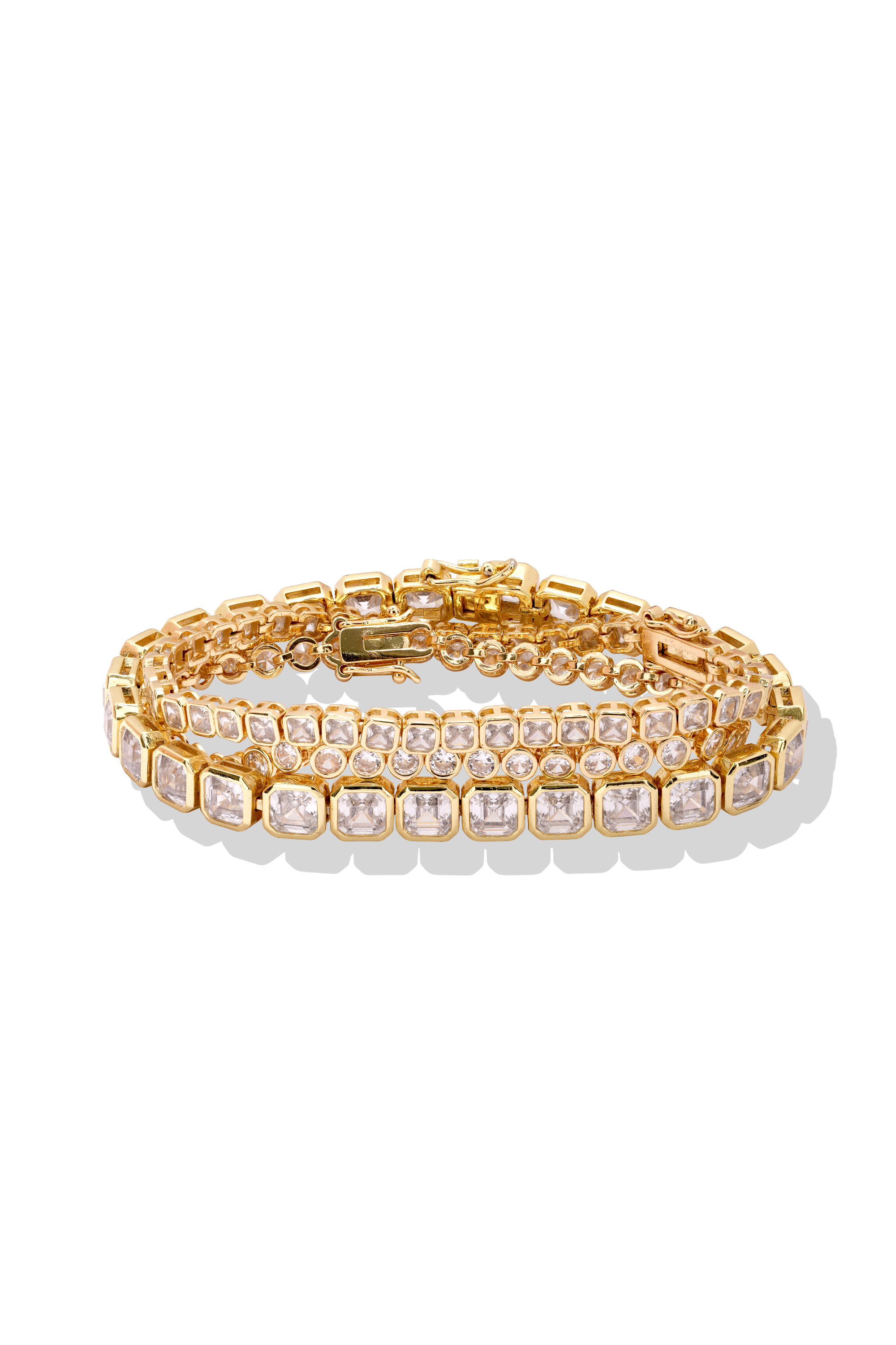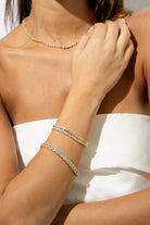 The Dream Stack combines the best of timeless elegance and modern luxury. Featuring the Eternal Bracelet, Elysian Bracelet and Mini Elysian Bracelet, this duo is crafted with 18k gold-plated brass and adorned with radiant cubic zirconias. The sleek design of the Eternal Bracelet pairs effortlessly with the classic-yet-modern allure of the Elysian Bracelet and Mini Elysian Bracelet, creating a harmonious stack perfect for elevating any outfit, day or night.