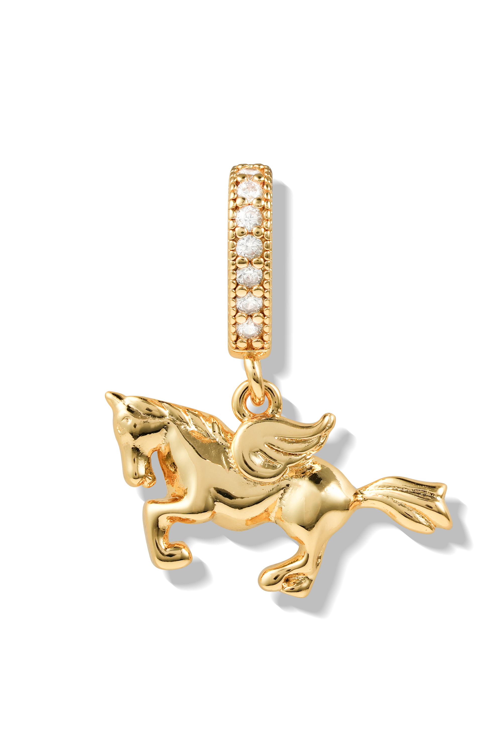 Crafted in 18k gold-plated brass and detailed with shimmering cubic zirconia, each piece is finished with glossy enamel accents that make the design feel truly special. Wear them as a symbol of luck, power, and endless adventure, because every outfit deserves a little gallop of glamour.